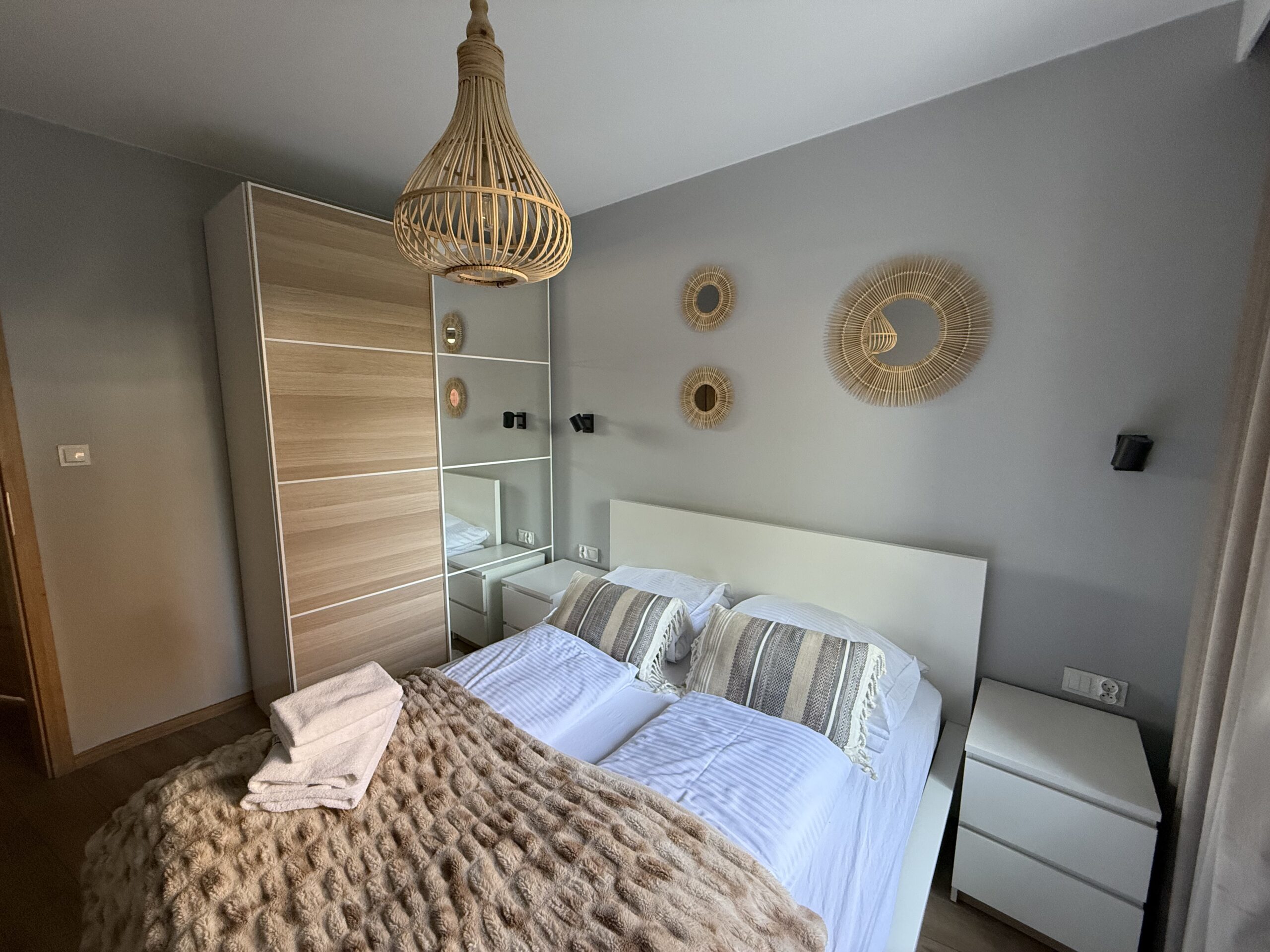 Apartament położony w obiekcie Sun & Snow Resorts. Przestronny lokal dwupokojowy o powierzchni 53m2 zlokalizowany na 2 piętrze. Wykończony i wyposażony, funkcjonujący. Do lokalu przynależy duży taras oraz zewnętrzne miejsce postojowe. W budynku basen, sauny, zewnętrzne jacuzzi, siłownia oraz sala zabaw dla dzieci